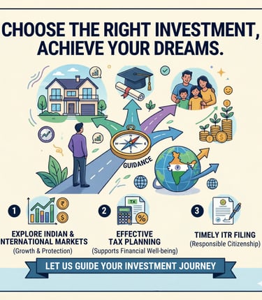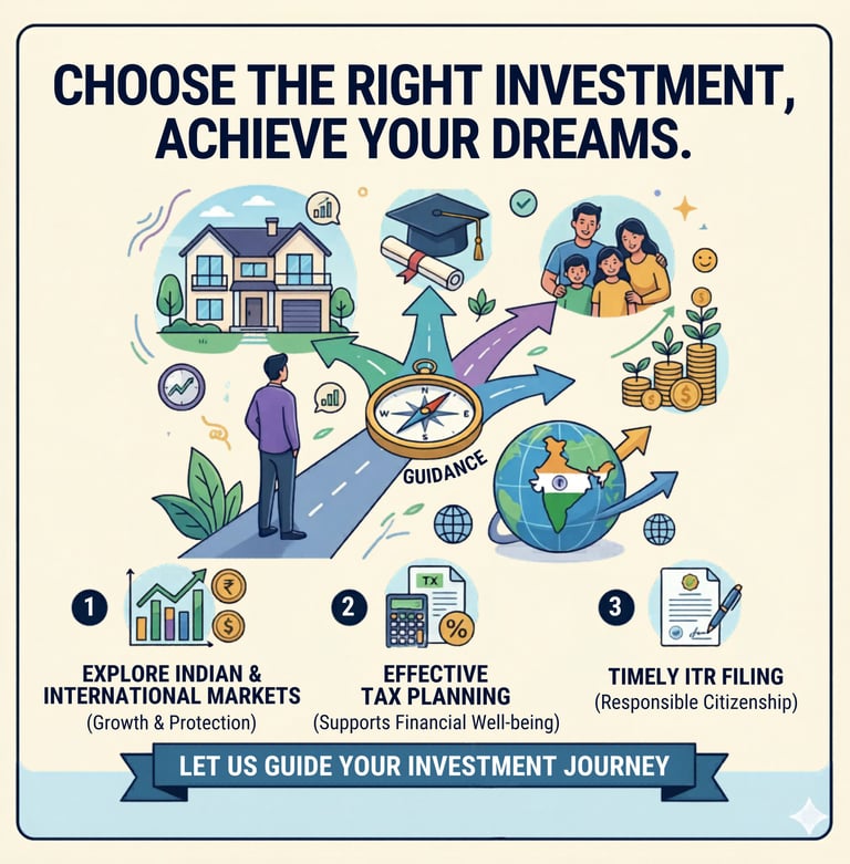 Our mission is to guide you in selecting the best investment options available in India and international markets for your financial growth and family protection.